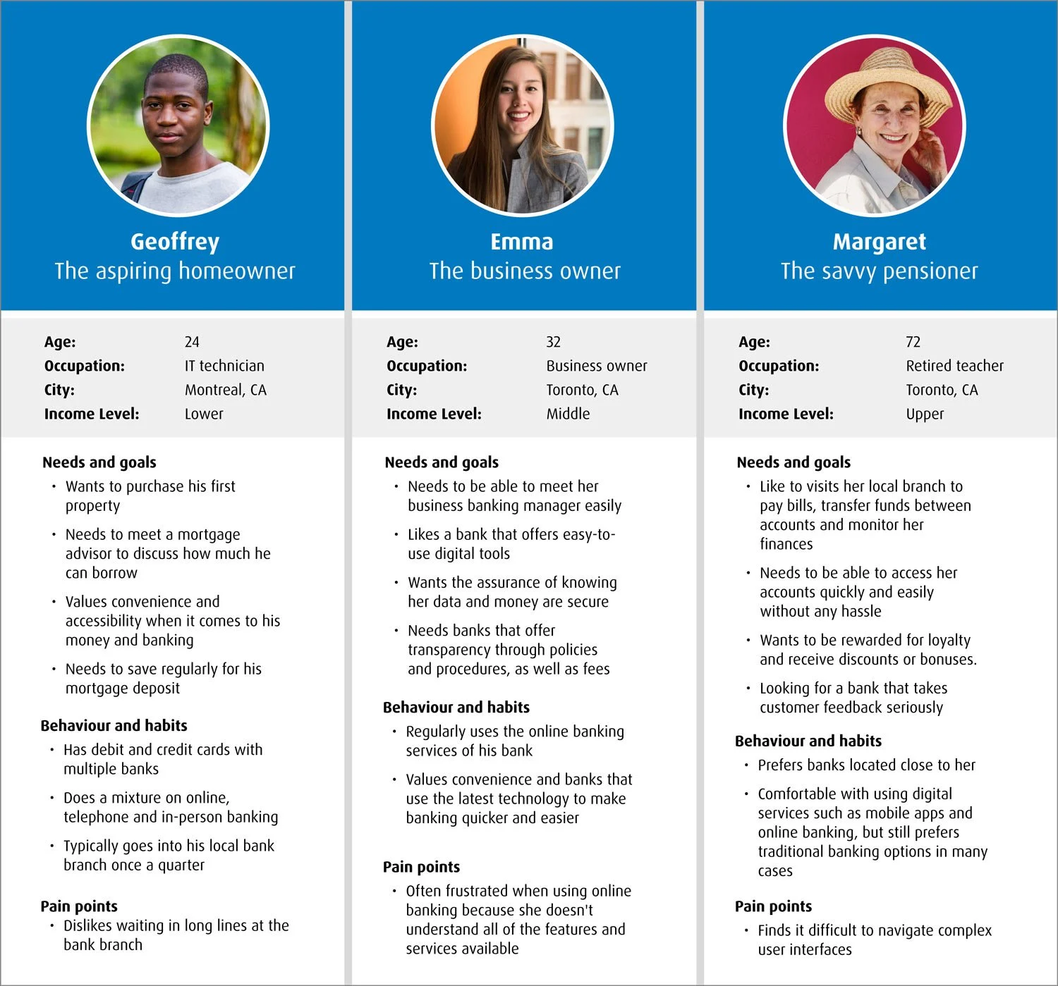 I developed three user personas to represent the experiences, goals and needs of our users.