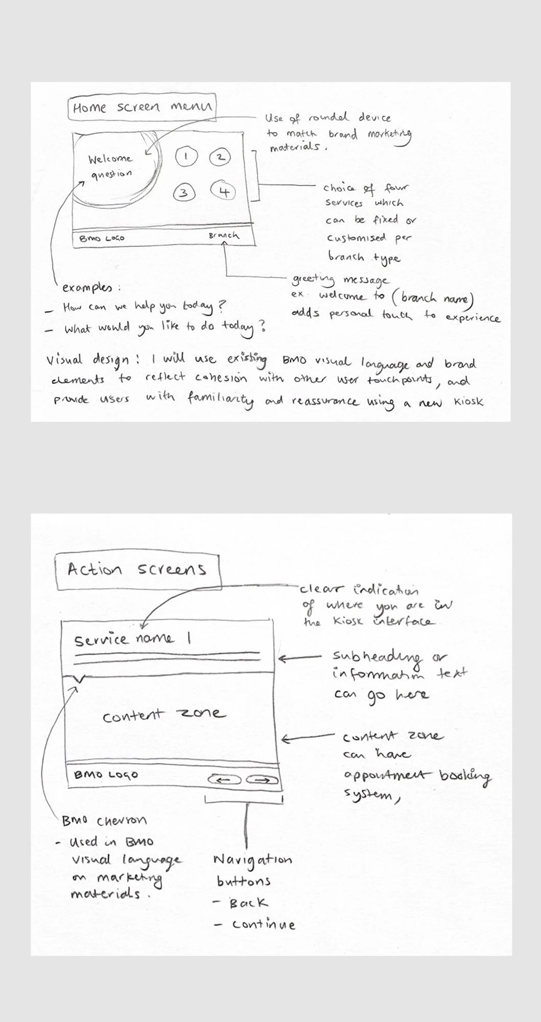 I carried out secondary research on BMO’s current online ‘bank by appointment’ system and the visual branding of their bank branches.